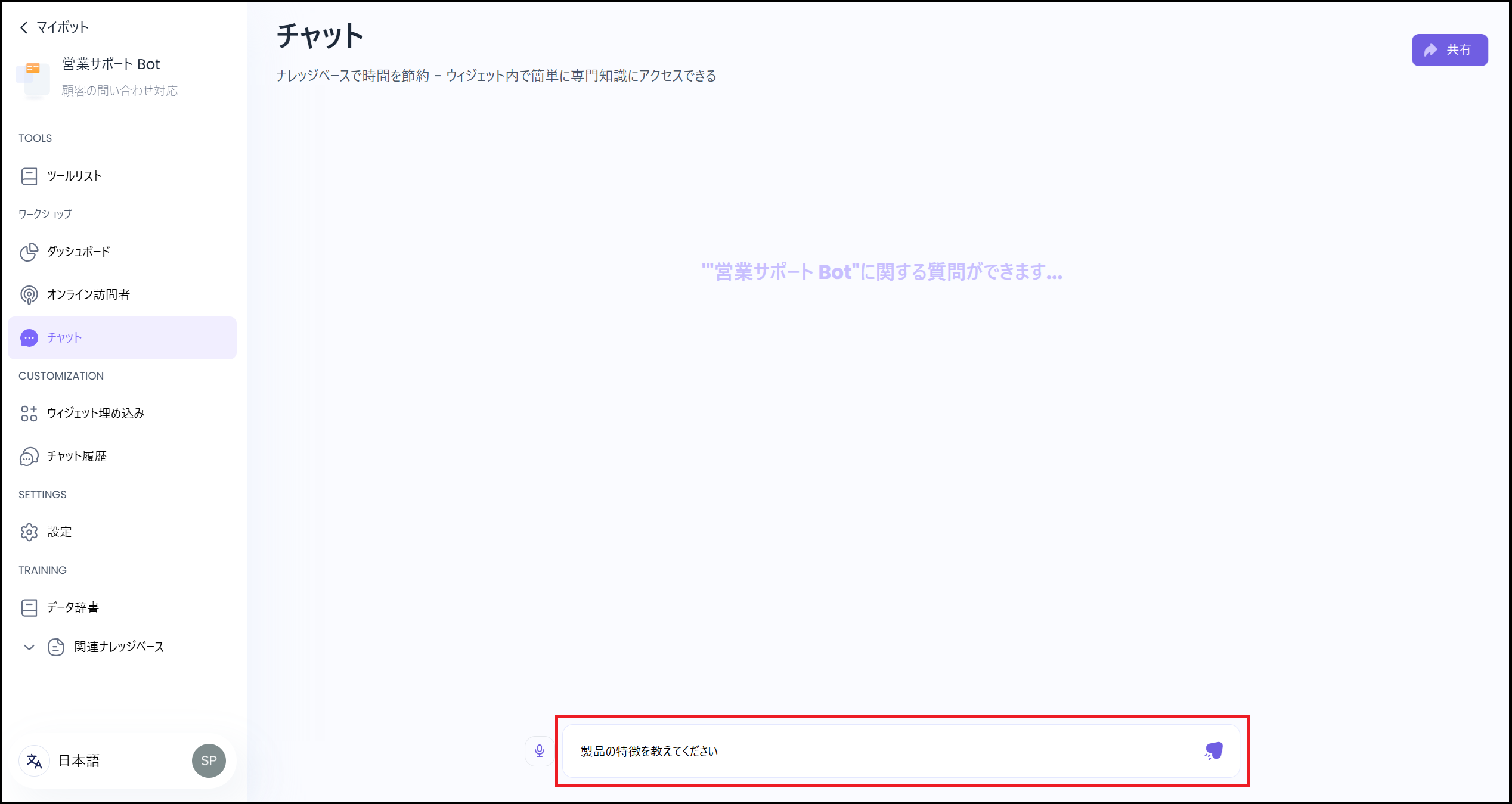 - 自分のWebサイトにボットのウィジェットを埋め込みできます。